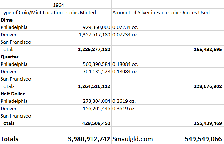 silver coins minted in 1964