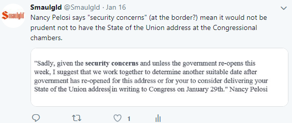 ← Return to Border wall battle extended to the SOTU address and Speaker Pelosi’s travel plans.