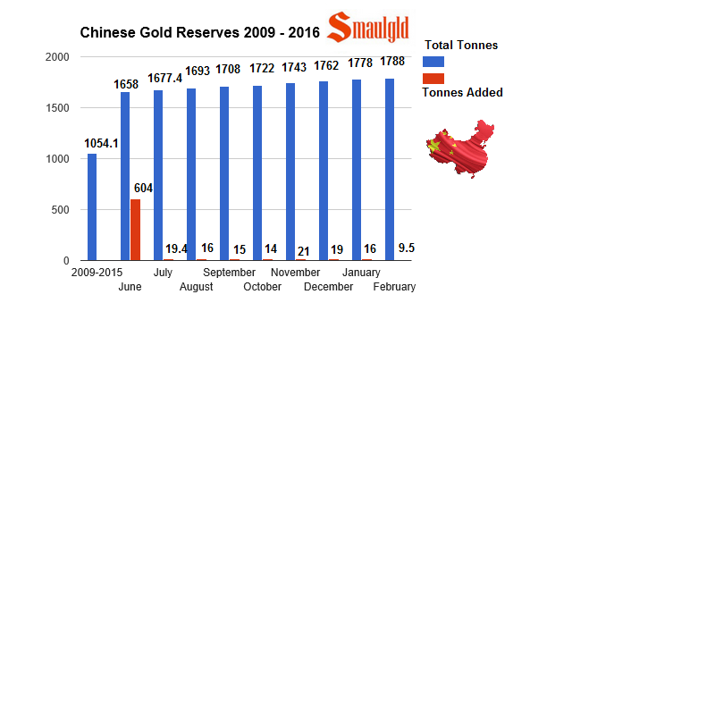chinese gold reserves 2009-2016 feb