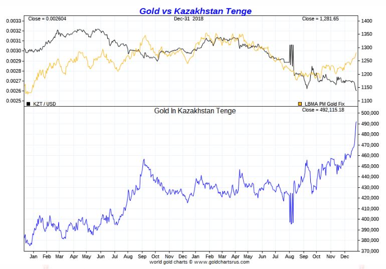 Gold vs Kazakh Tenge 2018