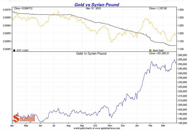 Gold vs the syrian pound first quarter 2015 chart