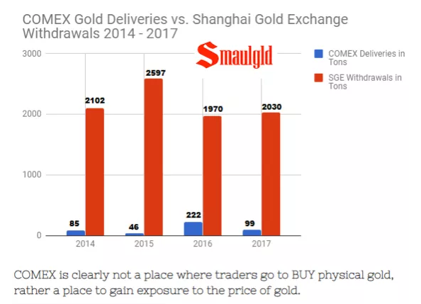 Comex vs SGE withdrawals 2014 – 2017
