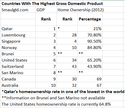 the countries with the largest GDP are not the countries with the highest homeownership rates