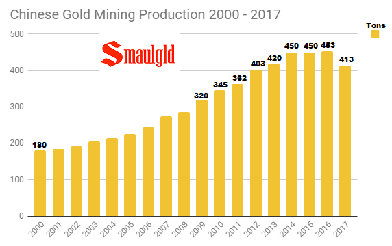 Chinese Gold mining production 2000 - 2017