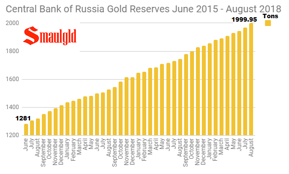 Central Bank of Russia Gold Reserves June 2015 – August 2018