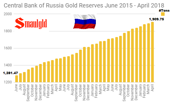 Central Bank of Russia Gold Reserves June 2015 – April 2018