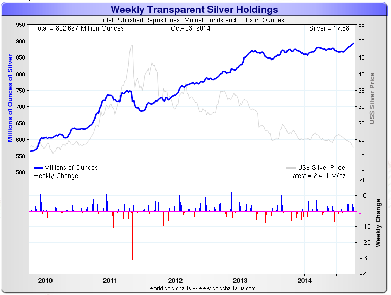 Silver ETF has increased their holdings steadily, unlike gold ETFs which have lost a good portion of their holdings