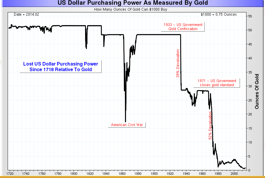 The dollar has suffered more harm from teh devaluation actions of Presidents Lincoln, Roosevelt and Nixon