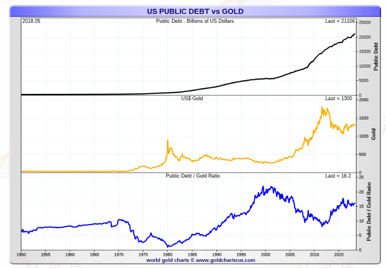 US Public Debt vs gold 2018