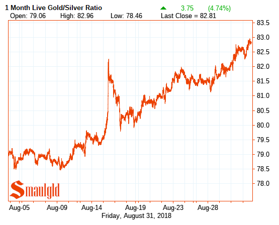 gold silver ratio one month august 31 2018